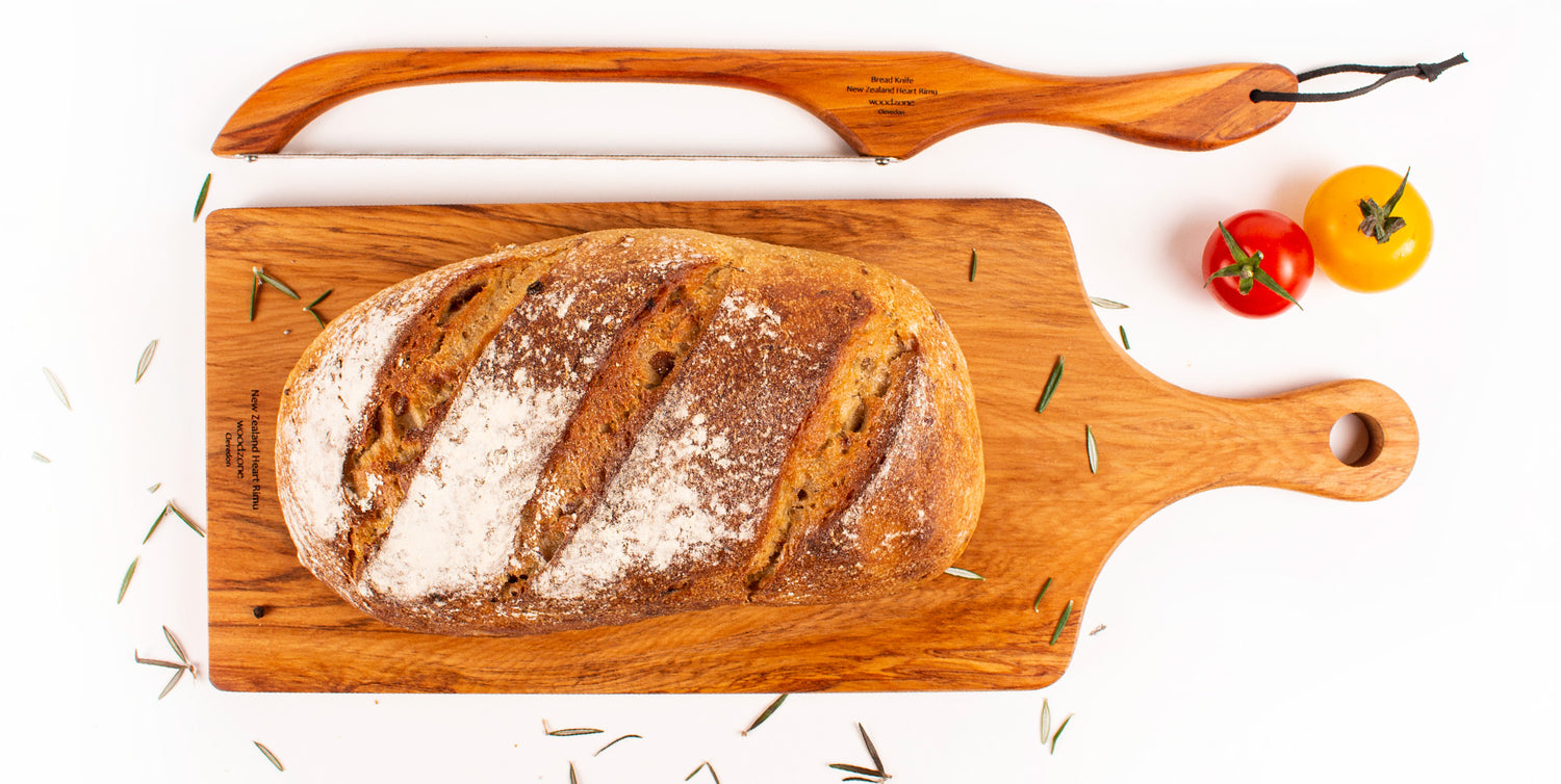 The Great NZ Bread Knife and Handle Board Set - Heart Rimu with Rimu Bread Knife