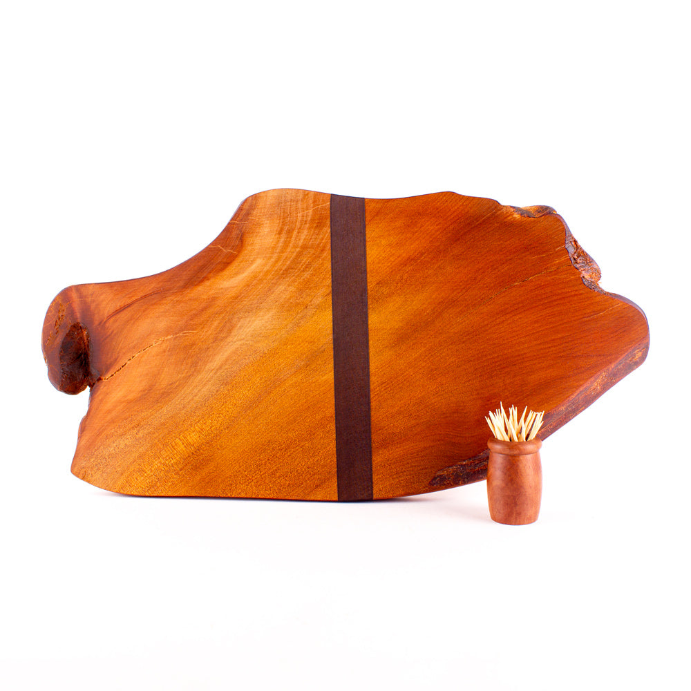 A natural edge slab board is a slice of wood cut from a log or a stump, leaving as much of the natural edge shape to form the perimeter. No two boards are the same.
