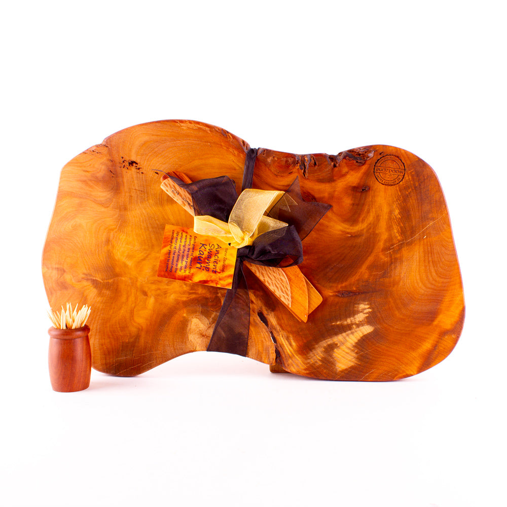 This incredibly rare board has been expertly selected from crowns and stumps of sustainably sourced est. 40,000-year-old Ancient Kauri. Featuring a unique natural edge and shapes from the original log or stump, and a distinctive glow which will leave you mesmerised.