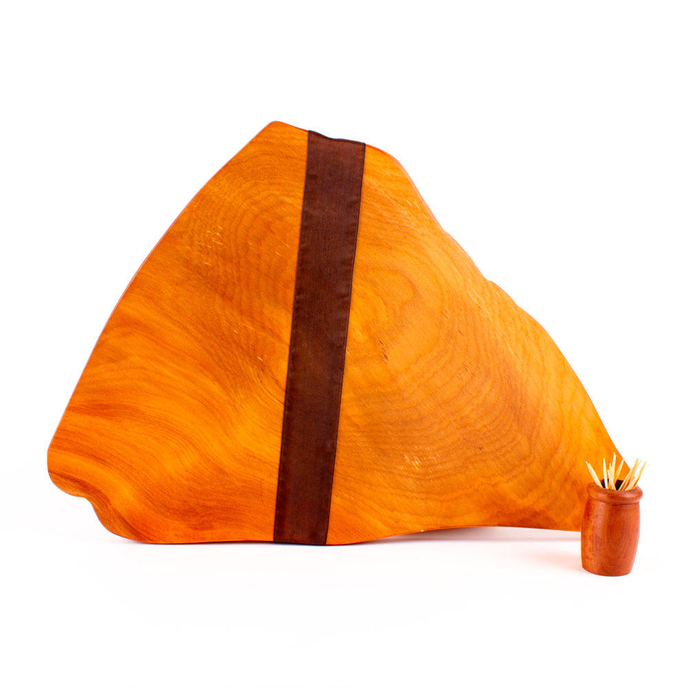 A natural edge slab board is a slice of wood cut from a log or a stump, leaving as much of the natural edge shape to form the perimeter. No two boards are the same.
