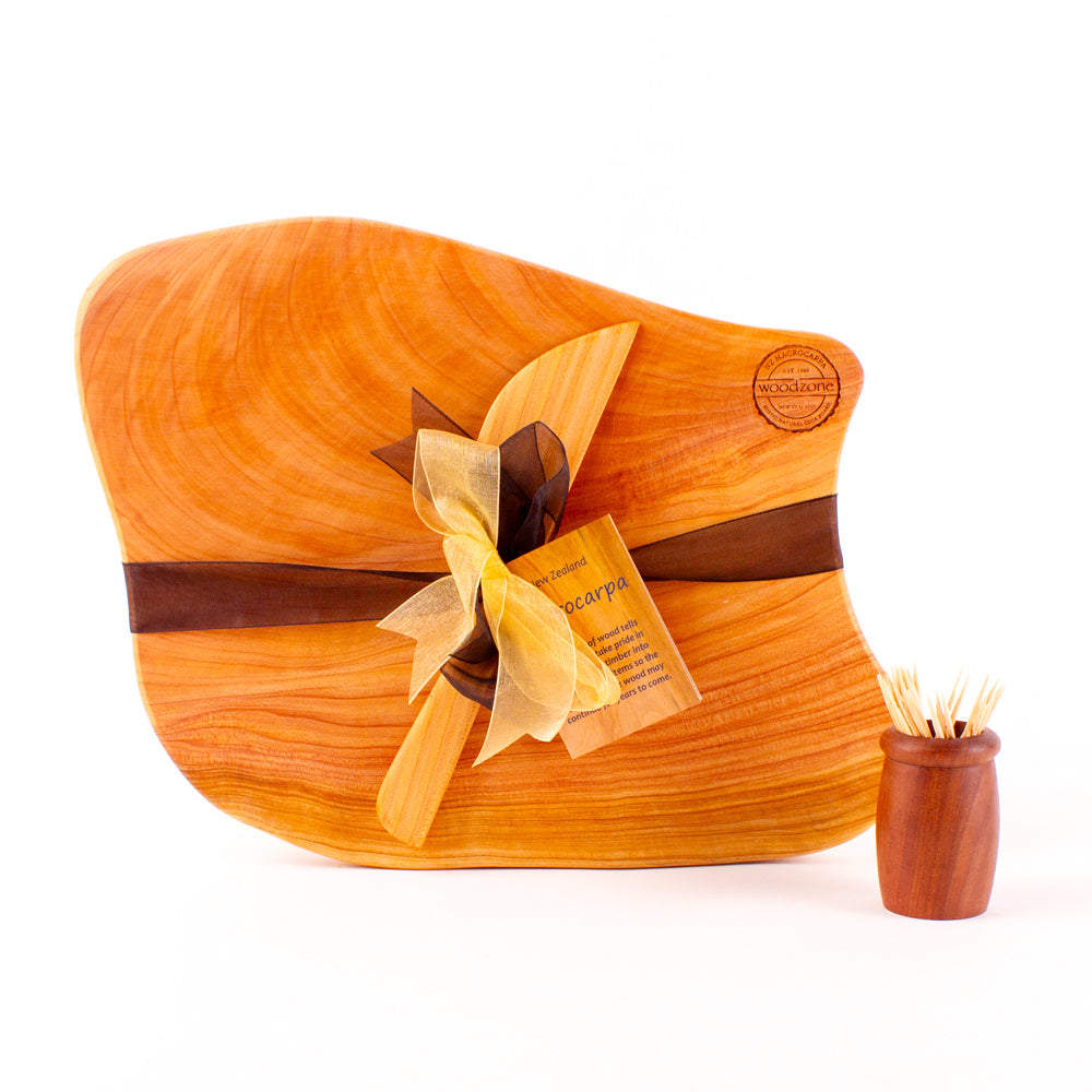 This board is one-of-a-kind, made from Macrocarpa wood milled from big old trees, sourced locally, known for its durability, superior hygiene properties and attractive honey-coloured grain. Lightweight and easy to handle, these boards will quickly become your favourite.