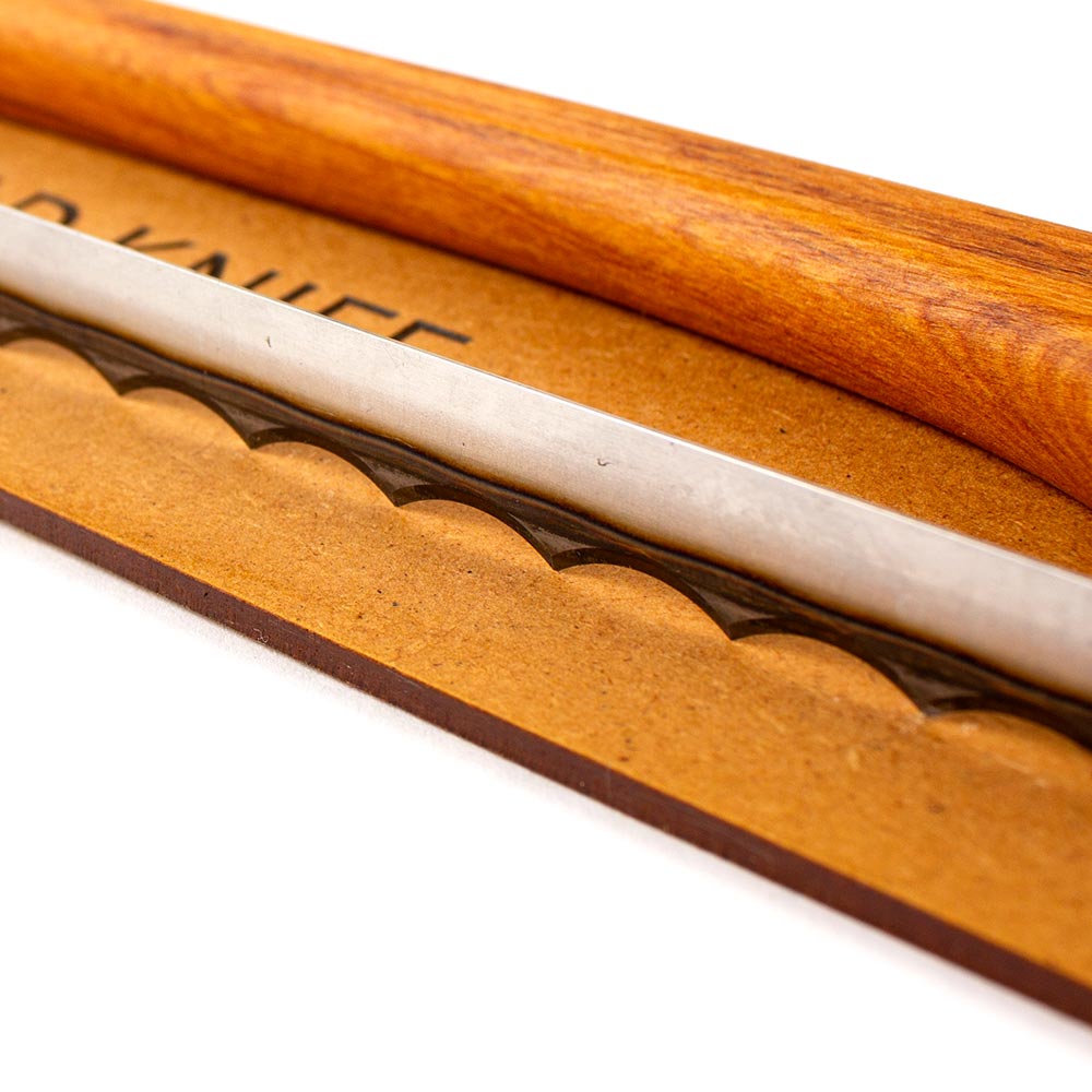 You will be amazed by how these knives cut bread! Our bread knives are made with a high-quality industrial hardened carbon steel blade. Designed to evenly cut the softest, freshest bread with ease. Available for the left or right-handed bread lovers of the world.
